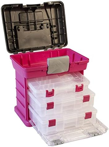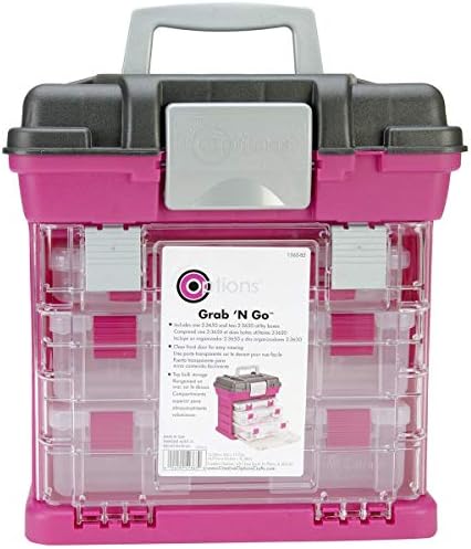 Creative Options is an innovator in craft organization and storage with its line of fashion-forward, functional and affordable products. Whether you knit, scrap, sew, or bead Creative Options’ goal is to keep you — and all of your crafts – organized. The innovative Grab-N-Go Rack System adds more storage, more versatility and more value. Each storage system includes a variety of utility boxes that feature the Pro-Latch locking system that keeps contents secure even if you drop it accidentally. The front Dura View cover offers access to a variety of utility boxes. The top lid also features the Pro-Latch tension locks and opens to a storage area for larger items. The 1363-85 Grab N’ Go Rack System with 2 – #2-3630 Deep Pro-latch Organizers and 1 – #2-3650 Organizer measures: 13.13″L x 9.88″W x 13.75″H.