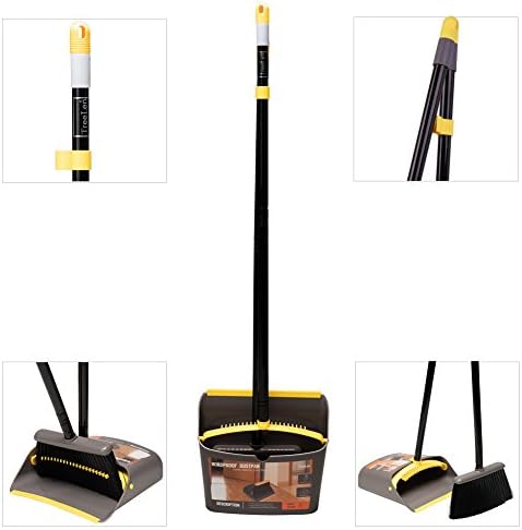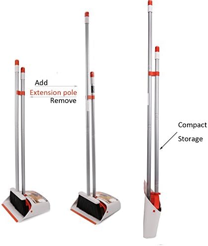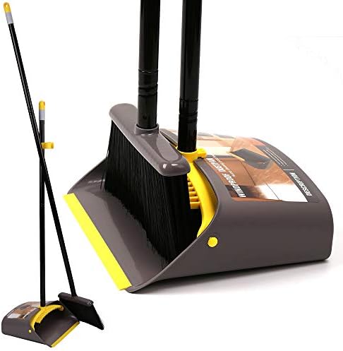 This Sturdy Broom and Dustpan Sweep Set is Perfect for Any Indoor Sweeping Task,Easy Assembling,54″ long handled broom and 38.5″ tall Dust pan If you are looking for a broom and dust pan,any easy way to sweep office, house, kitchen, and indoors, our Long Handled Broom with Dustpan is a perfect and clever choice. Made of Brand New ABS material,Sturdy and Durable, 55″Long handle broom allow you to stand upright.