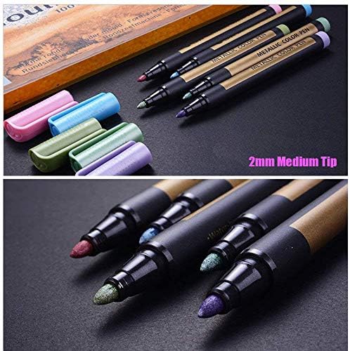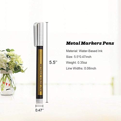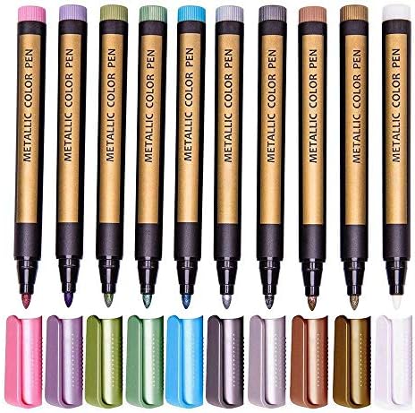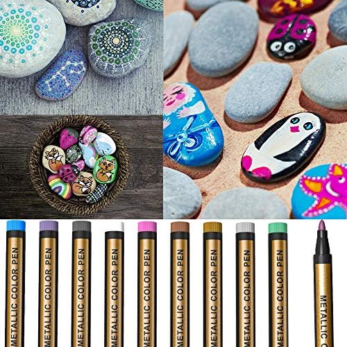 Metallic Paint Pens for Rocks Painting, Scrapbook, Photo Album, Glass, Metal, Ceramic, Craft Making Supplies Kids. Water-Based Metallic Marker Pens Fine Point Permanent.10 Assorted Metallic Colors/Set