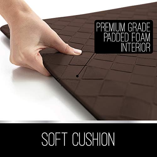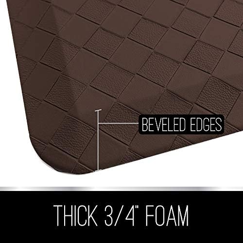 Our mats are better and more durable. Comprised of ¾” thick foam, this mat will help to relieve pressure on your spine and joints so you can stand more comfortably for longer periods of time. The thick cushion helps to absorb day-to-day impact on muscles and joints.