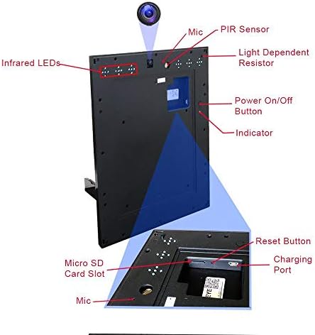 【STARLIGHT NIGHT VISION】: Built-in « No Glow » night vision LEDs inside for seeing up to 20 feet in total darkness at night and It has a concealed 15 degree downward viewing angle camera lens with daylight HD color video of 65 degree camera, record with date/time watermark, nobody will suspect this standard picture frame secretly hides a covert IP nanny camera with a built-in DVR.